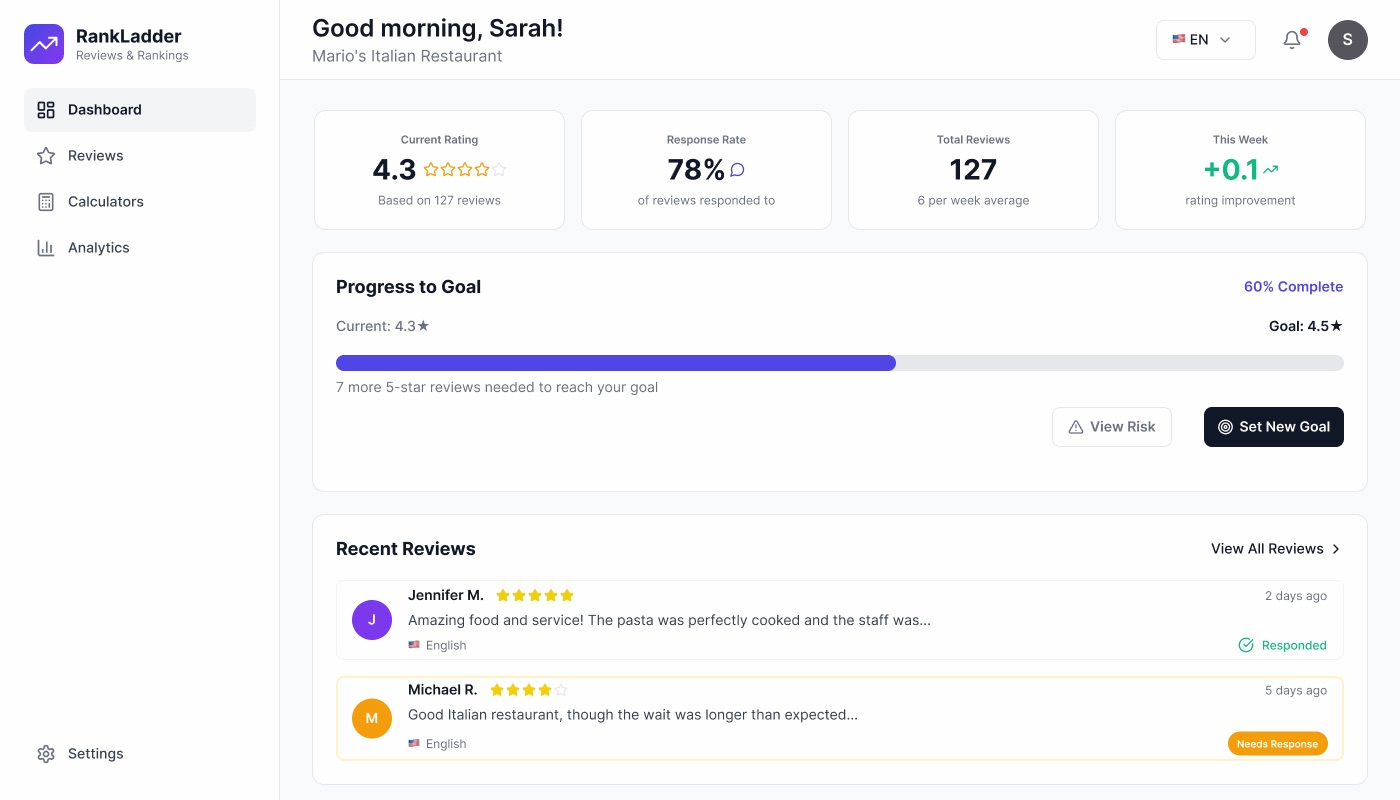 Transform from guessing to precision - know exactly how many 5-star reviews you need to reach your Google rating goal